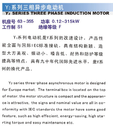 You Are Here:Home >> Product >> Y2 series >> Y2三相異步電動機 |