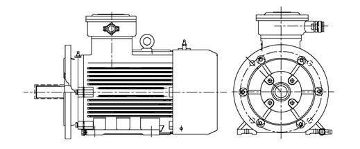 B35安裝方式:電機(jī)帶底腳,軸伸端帶法蘭
