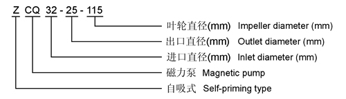ZCQ型自吸式磁力泵型號意義: