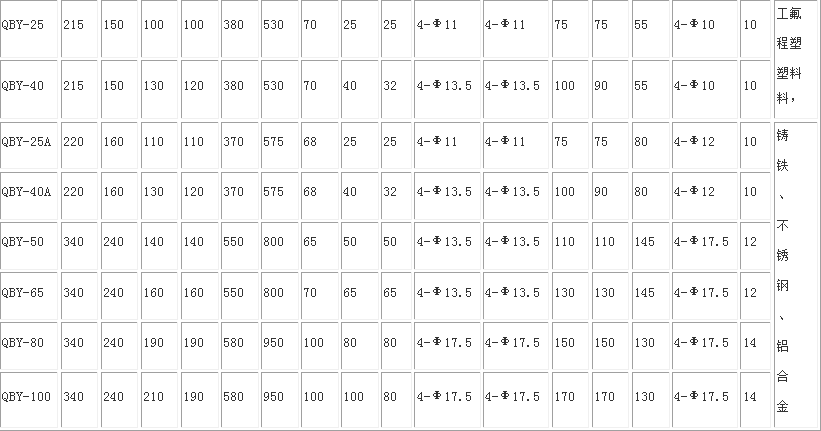 QBY氣動隔膜泵性能參數