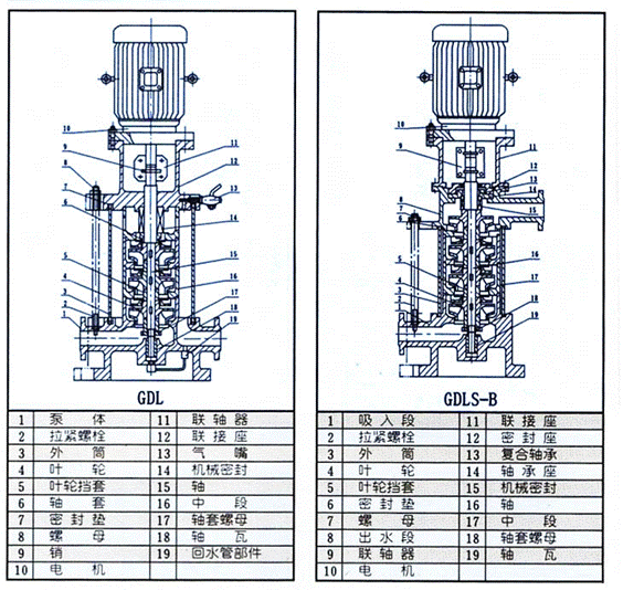 為了使用戶能安全、可靠的使用該型泵,本公司特別研制了便拆式結構型,它除具有GDL、GDLS的一切優點外,為您更換機械密封等易損件提供了方便、快捷、省力的途徑,使GDL管道離心泵無憂運行與維護。 GDL管道離心泵應用范圍 GDL管道離心泵主要適用于高壓運行系統中冷熱清水的循環和增壓,高層建筑多臺泵并聯供水、消防、鍋爐給水和冷卻水系統及各種沖洗液的輸送等。 工作條件 1、本型多級管道泵可輸送清水或物理化學性質類似于清水的液體。