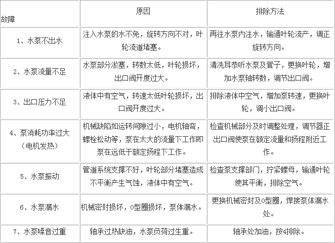 使泵在設計點附近運行,據泵的額定流量和揚程附近。〔為此,在出口法蘭附近裝一只壓力表)。注意:本泵嚴禁缺水運轉,以免損壞密封件。